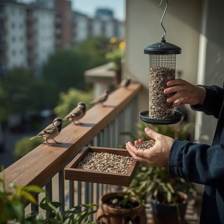 mycie karmników co 48–72 godziny wodą z detergentem to standard rekomendowany przez ornitologów; przy podejrzeniu ogniska chorobowego warto zastosować dezynfekcję roztworem wybielacza w proporcji 1:9 (jedna część wybielacza na dziewięć części wody) i pozostawić karmnik do całkowitego wyschnięcia przed ponownym użyciem. Utrzymywanie suchego środowiska wokół karmnika poprzez stosowanie daszków i umieszczanie podajników w miejscach lekko osłoniętych ogranicza rozwój pleśni. Spleśniały lub mokry pokarm należy natychmiast usunąć i zutylizować, a nie wystawiać ponownie. Zalecane jest także umieszczanie karmników w odległości co najmniej 2–3 metrów od szyb lub stosowanie naklejek antykolizyjnych, by zmniejszyć ryzyko zderzeń z szybami.